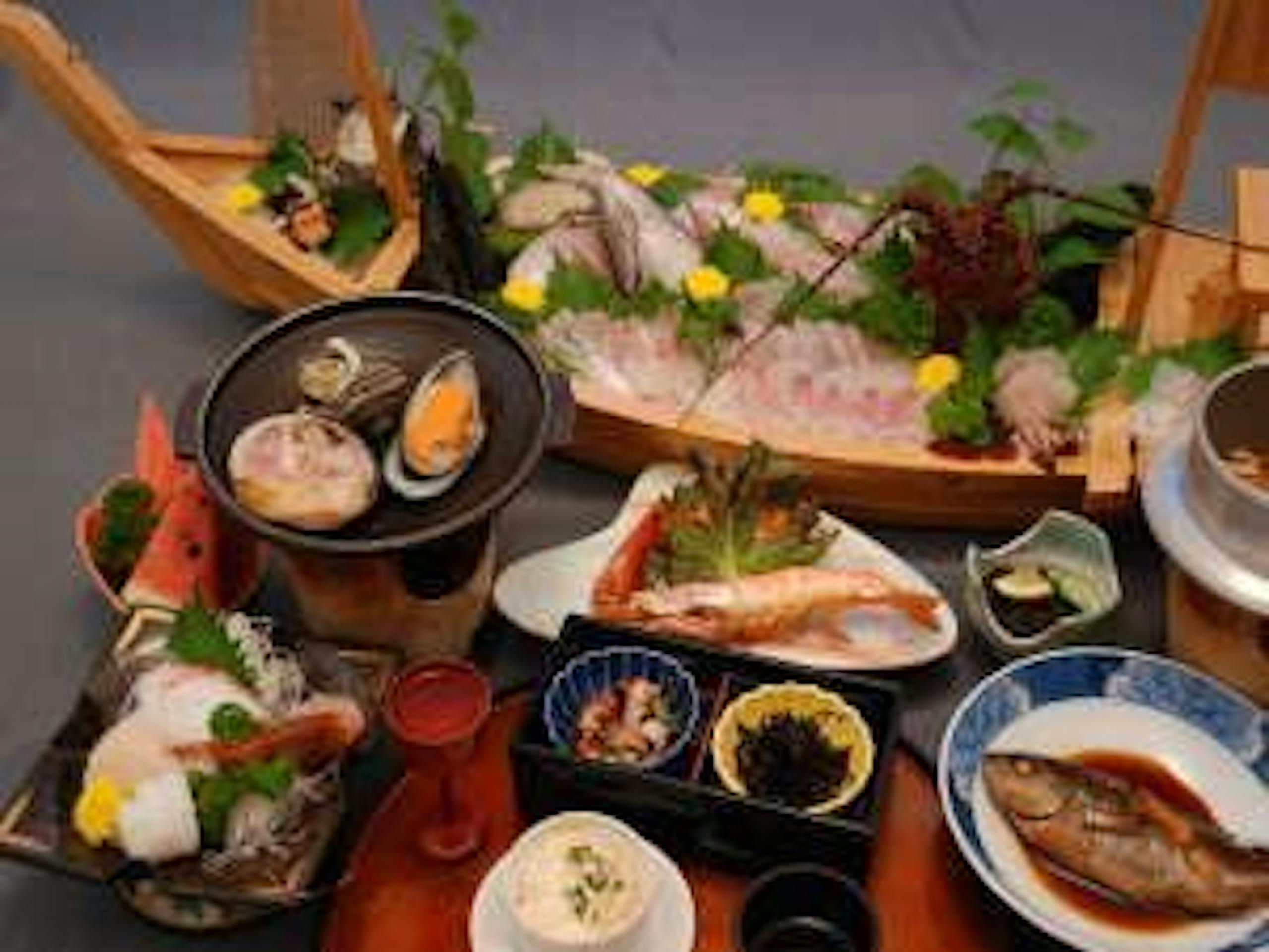 食事では旦那と若旦那が水揚げした新鮮な魚介類を使った料理を食べられます。